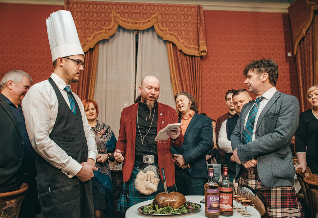 Õhtu sisaldab kolmekäigulist õhtusööki šoti rahvusroogadega, keelekastet ja meelelahutust. Õhtusöögi maksumus külalise kohta on 90 €.